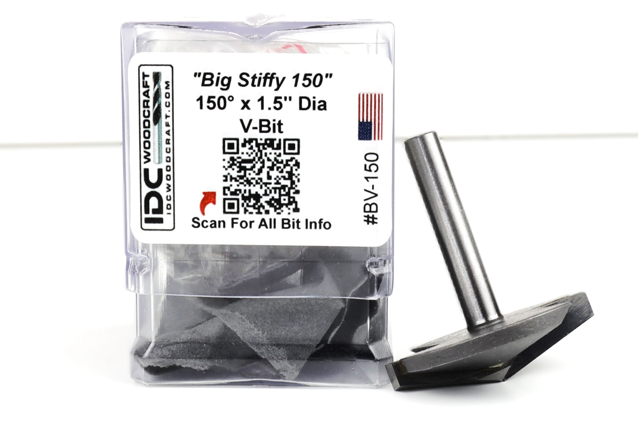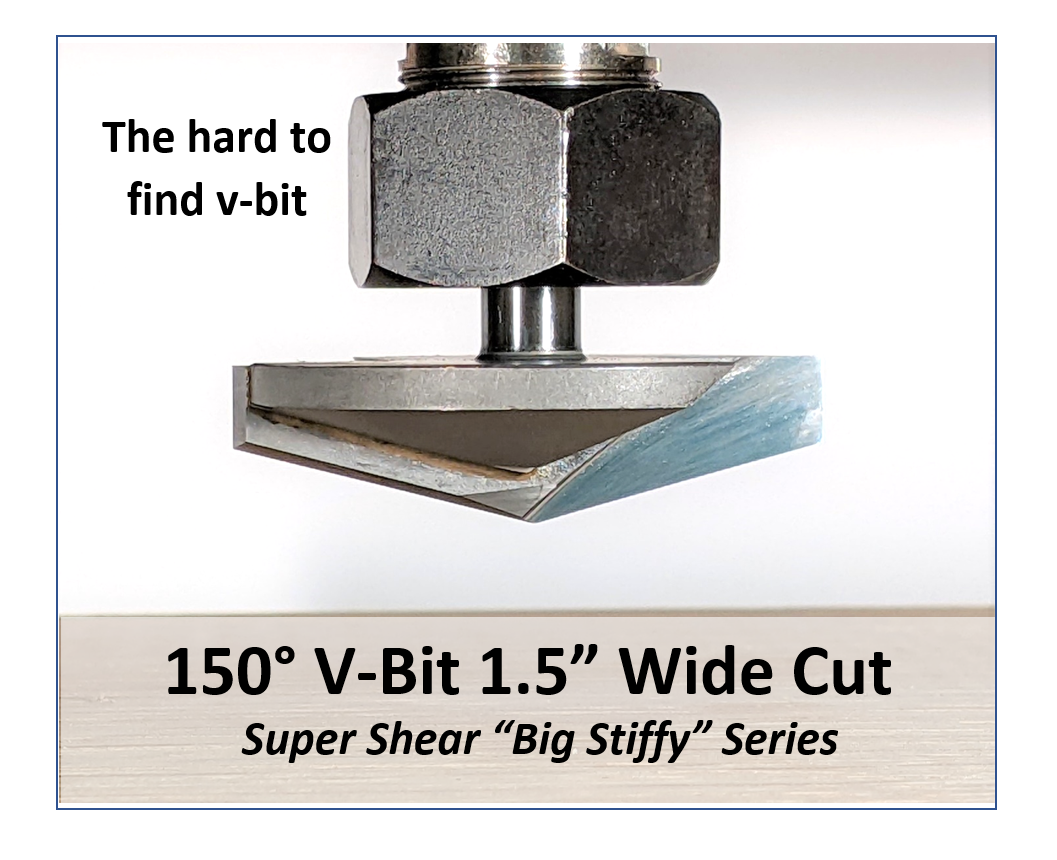 This Big Stiffy series 150 degree V groove router bit, 1/4" Shank for CNC Routers is super useful to create large v carves for those woodworking CNC projects that need to be seen! And, if you want to make a pizza peel on a CNC router, it is excellent for making the taper on a pizza peel.