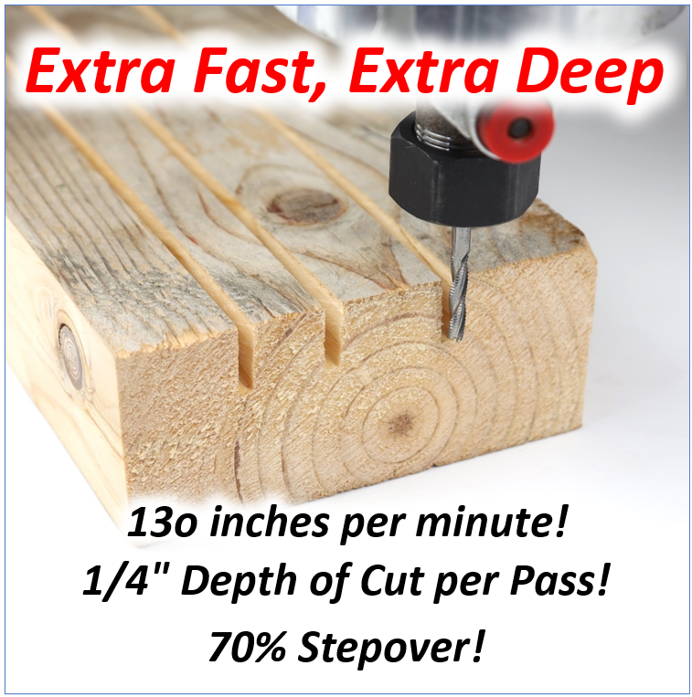 Featuring a staggering 1/4" depth of cut per pass, 80ipm plunge rate, 70% step-over, and a whopping 130 inches per minute cut rate, the BADGER is undisputed when it comes to rapid material removal from your CNC router woodworking projects.