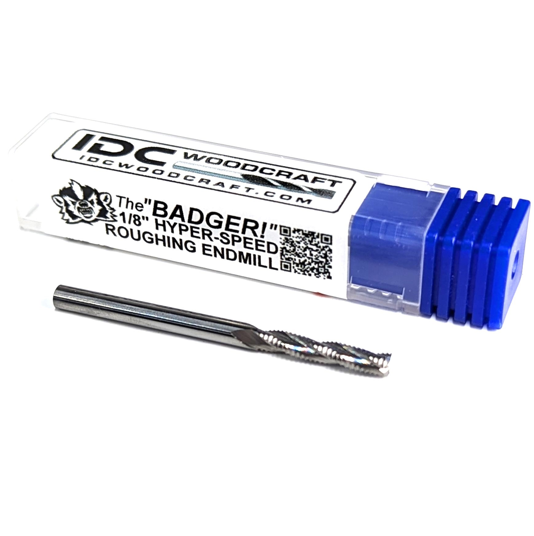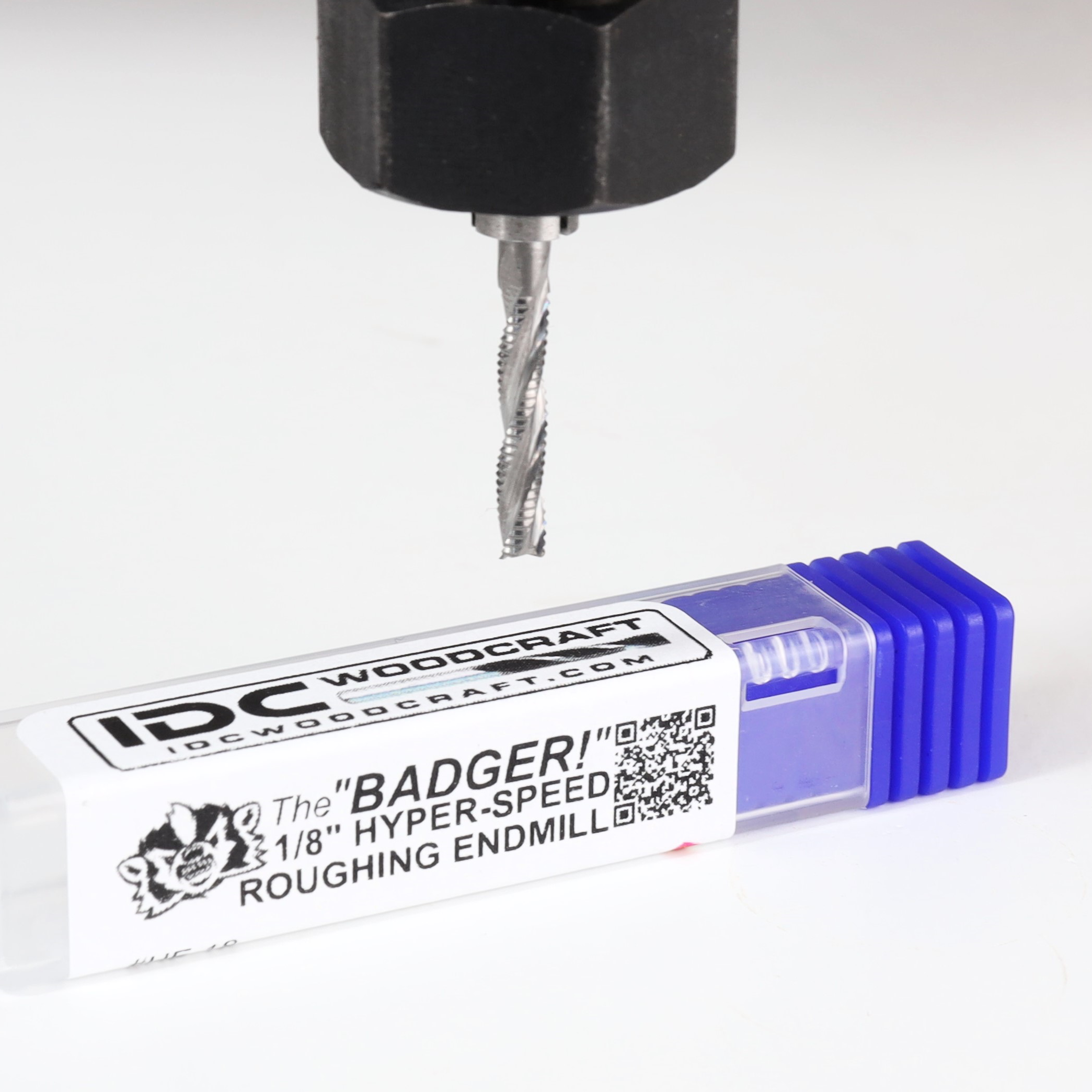 With a 1/8 shank and 1/8” cut diameter, the BADGER falls into the roughing bit category. The BADGER is not designed to deliver clean cuts. Its sole purpose is speed, and it excels at it!