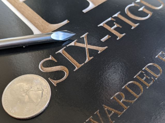 V carving bits are not all the same. The Blade is designed with a knife edge all the way to the point! Not only can you carve to 0.005" detail, but this CNC router bit actually cuts the wood, leaving a mind-blowing smooth cut that blows standard v bits out of the water. This is a true 60 deg v-bit!