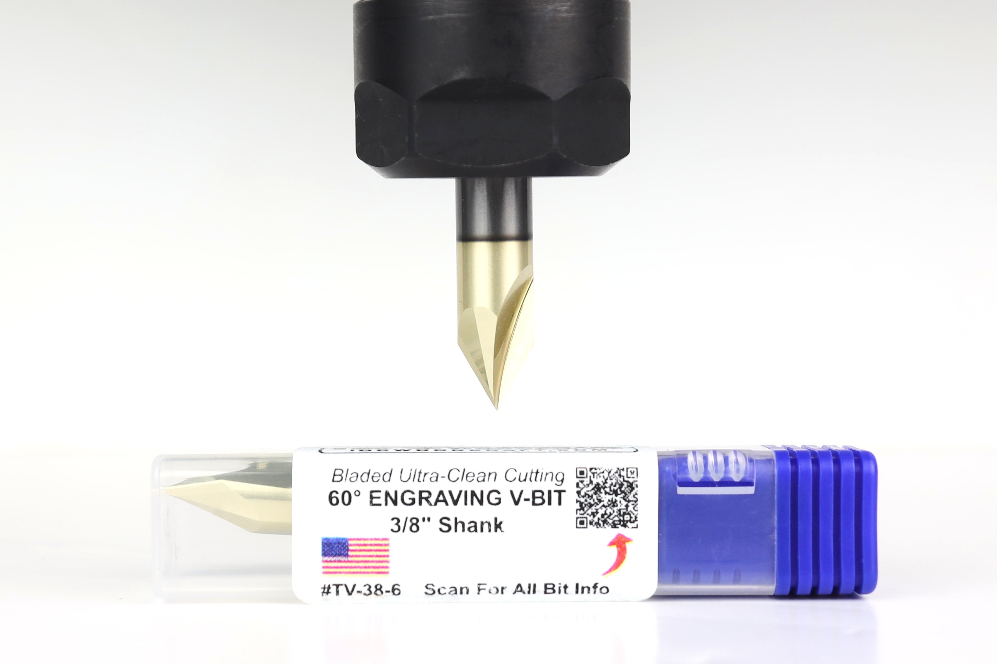 Ultra-Clean Cutting 60 Degree V-bit for CNC Routers, 3/8" Shank