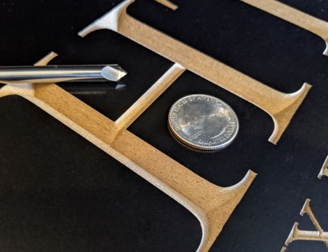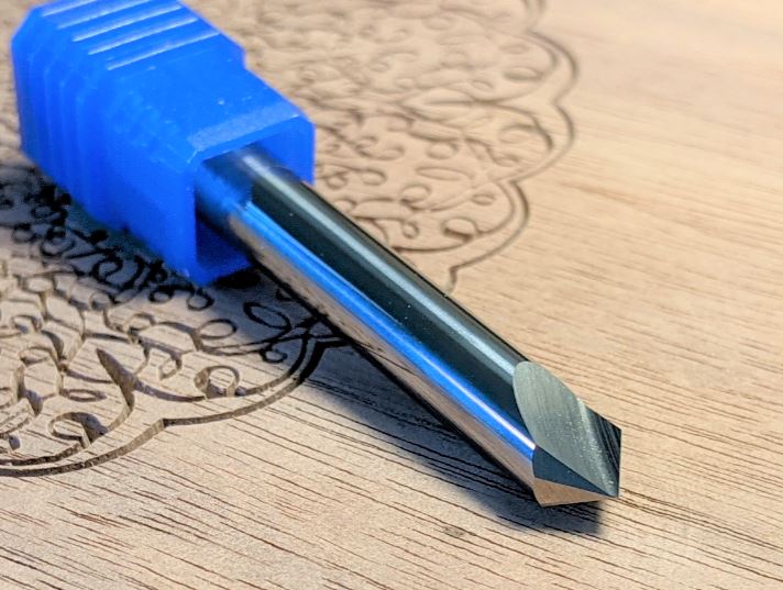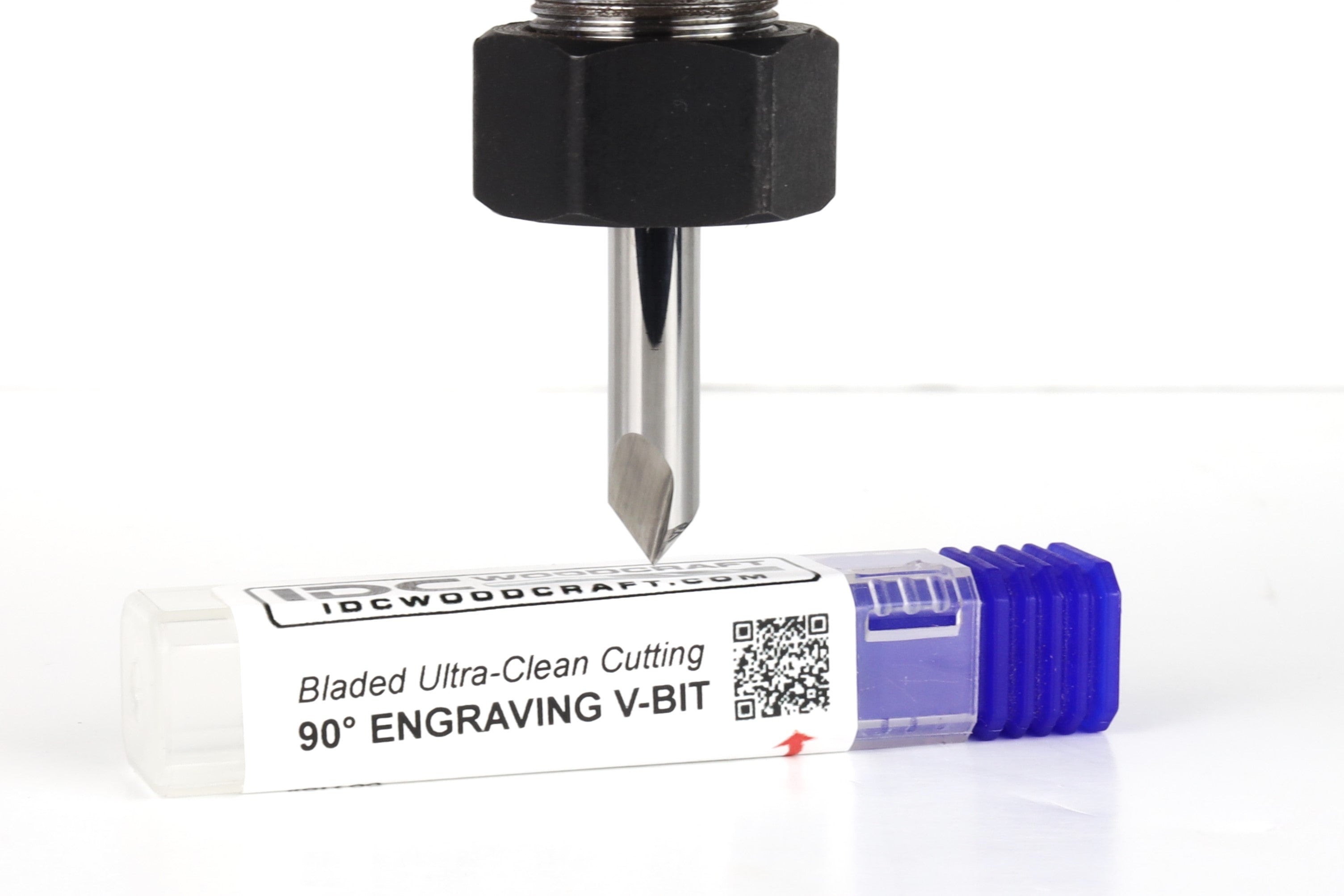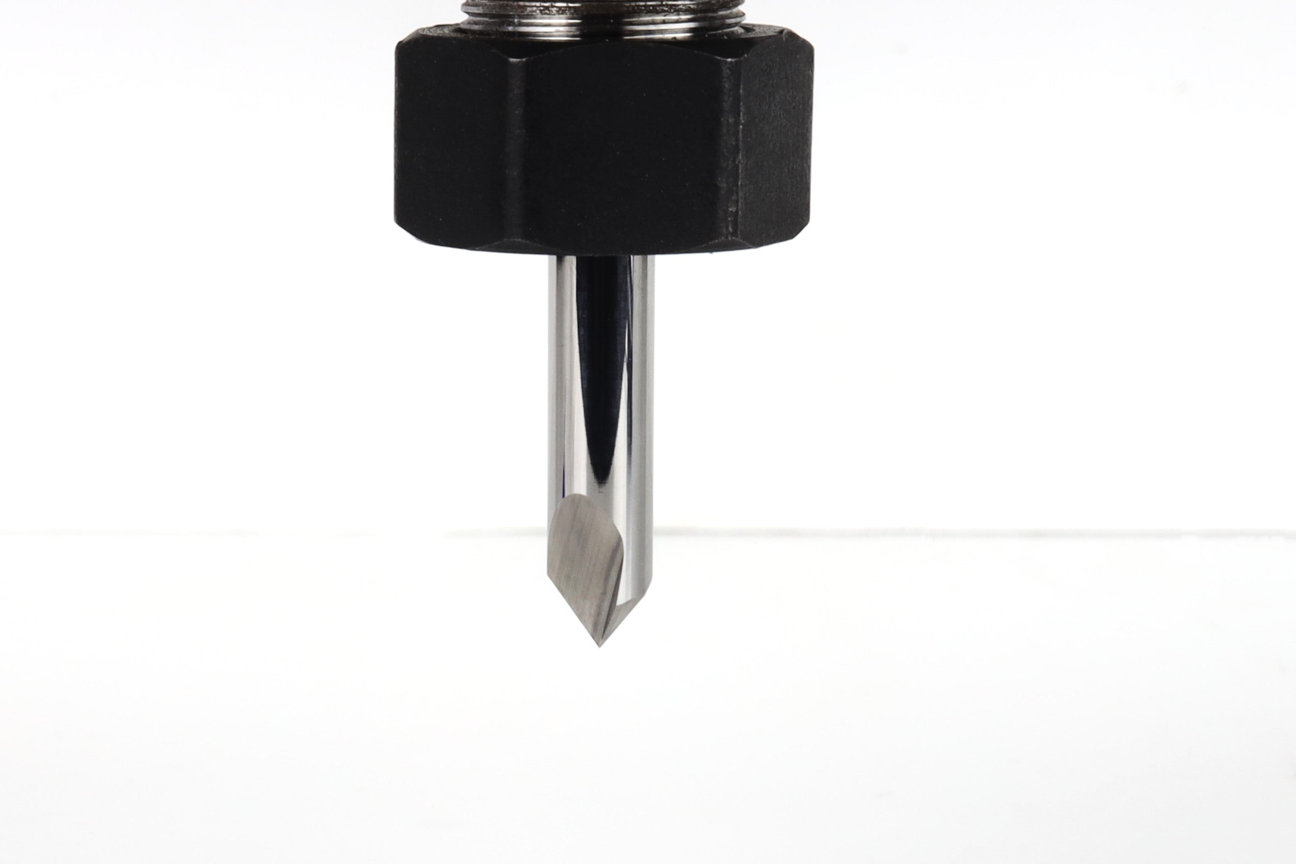 V carving bits are not all the same. The Blade is designed with a knife edge all the way to the point! Not only can you carve to 0.005" detail, but this CNC router bit actually cuts the wood, leaving a mind-blowing smooth cut that blows standard v bits out of the water. This is a true 90 deg v-bit!