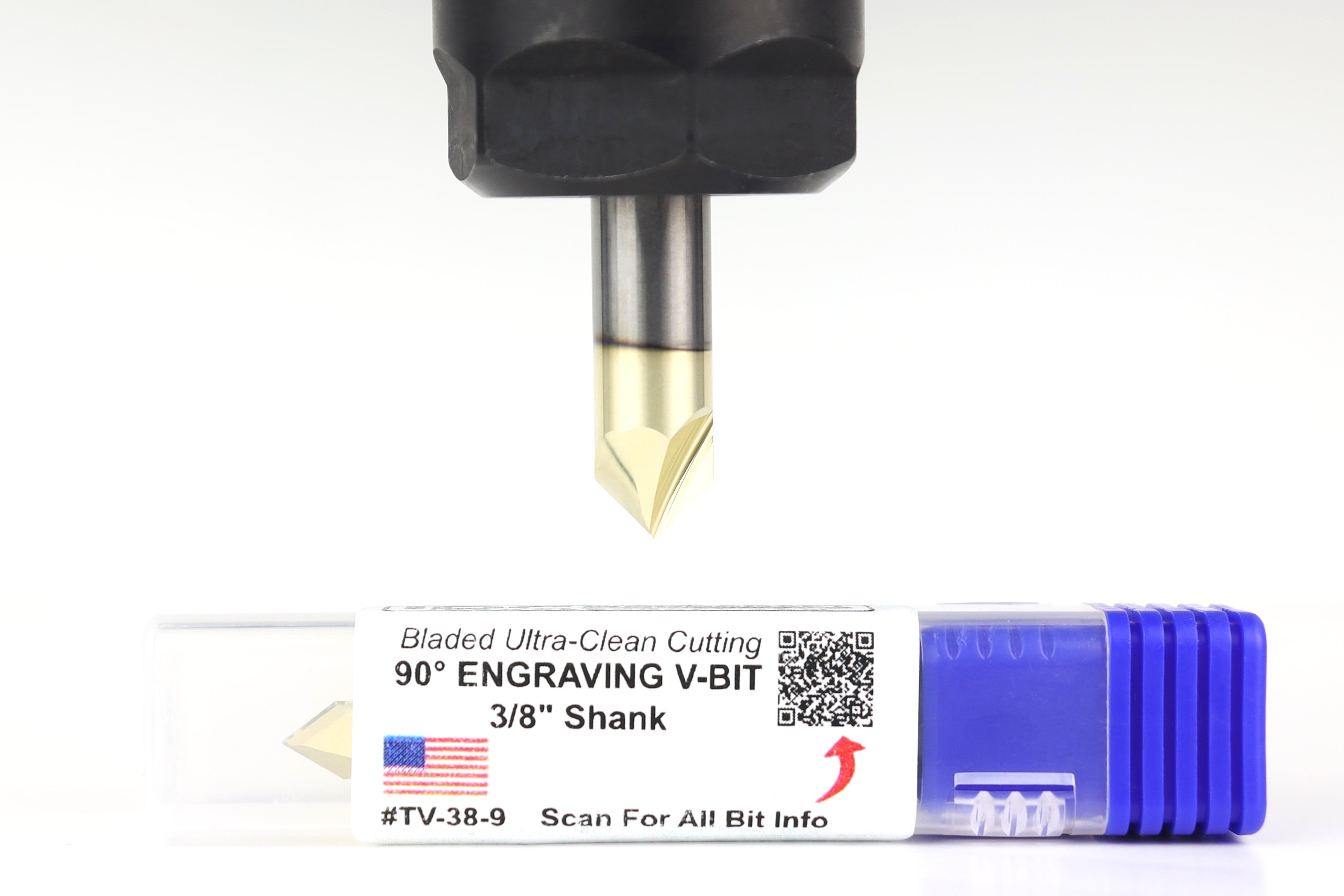 Ultra-Clean Cutting 90 Degree V-bit for CNC Routers, 3/8 Shank