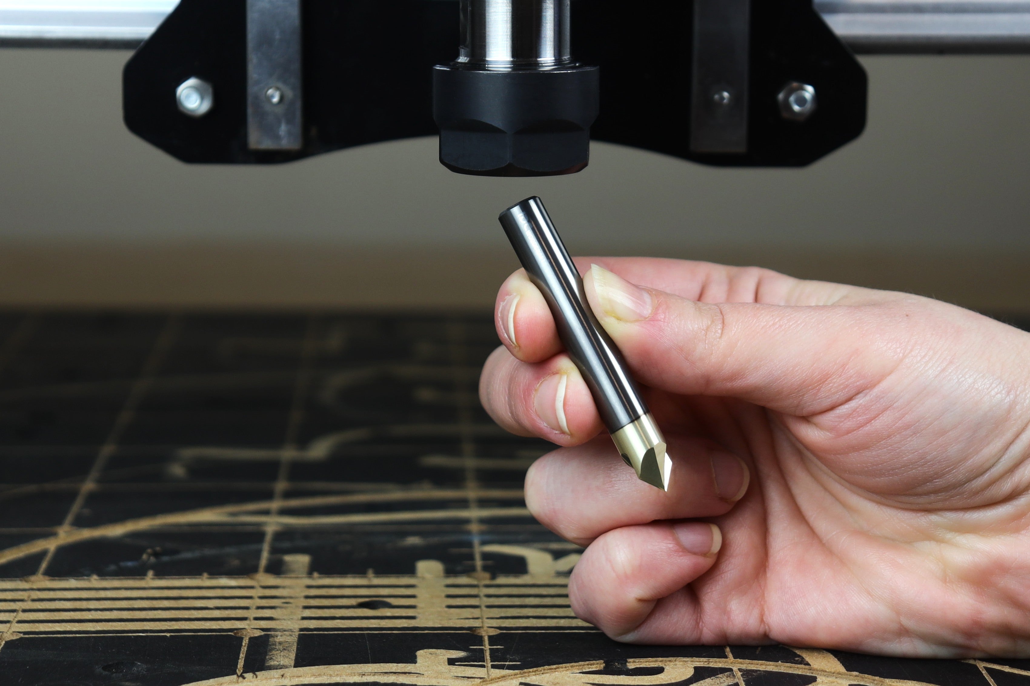 V carving bits are not all the same. The Blade is designed with a knife edge all the way to the point! Not only can you carve to 0.005" detail, but this CNC router bit actually cuts the wood, leaving a mind-blowing smooth cut that blows standard v bits out of the water. This is a true 90 deg v-bit!